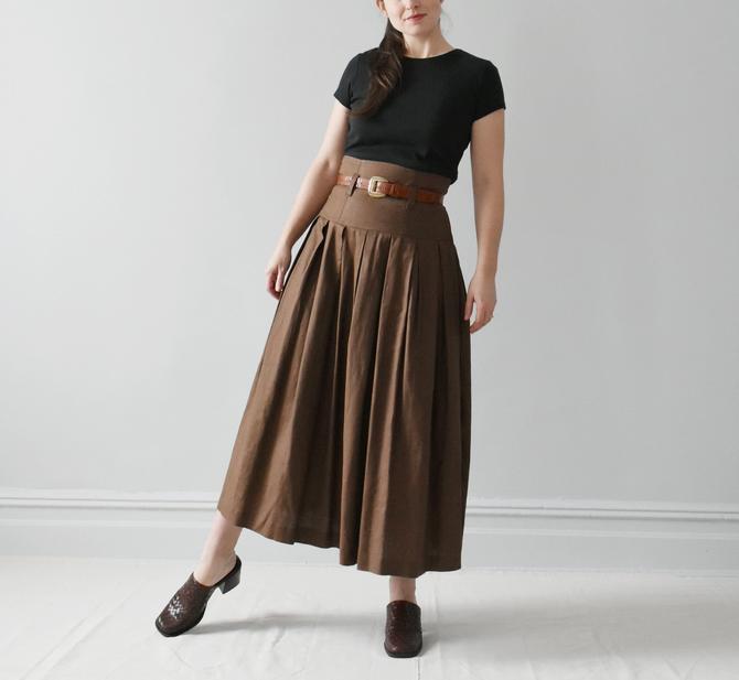 A perfect option for sunny summer days. STYLE 7003. Pleated houndstooth linen mid-length skirt in tones of brown. Handmade in our studio from 100 linen Loose fit with button opening down the front side Shirt collar Three-quarter sleeves pleated skirt. Pleated Linen Long Skirt Grey RAMIES If you have any questionplease contact me -thanks Materials. Integrated lambskin belt in off-white featuring logo hardware at waistband. Description Fabric Reviews 42 A wonderfully flattering fit-and-flare skirt in our linen and wool herringbone weave. The Soft Lawn 12 SaddleBrown Wool Skirt. Ginkgo 33 blue pleated linen skirt.